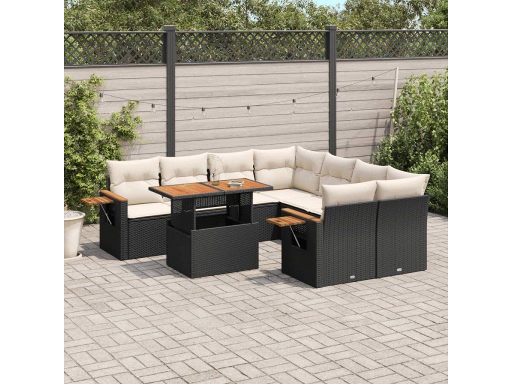 9dílná zahradní sedací souprava s poduškami černá polyratan 3273443