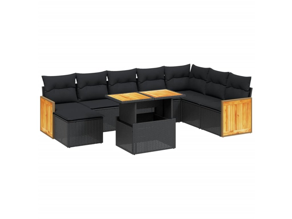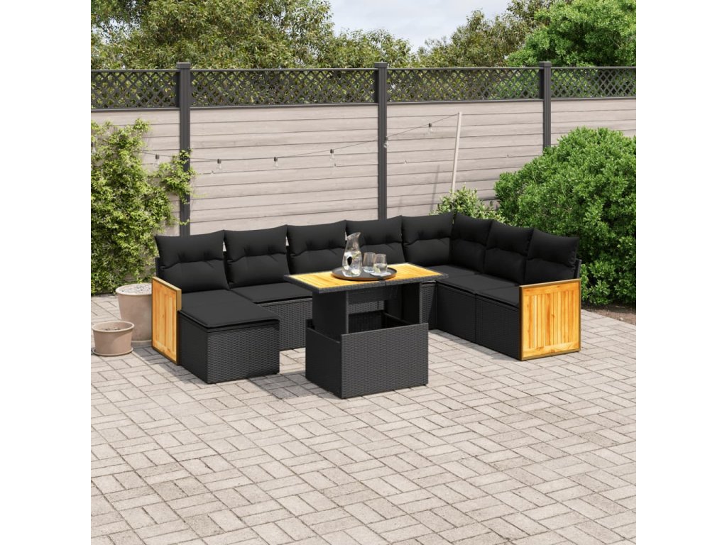 9dílná zahradní sedací souprava s poduškami černá polyratan 3274093