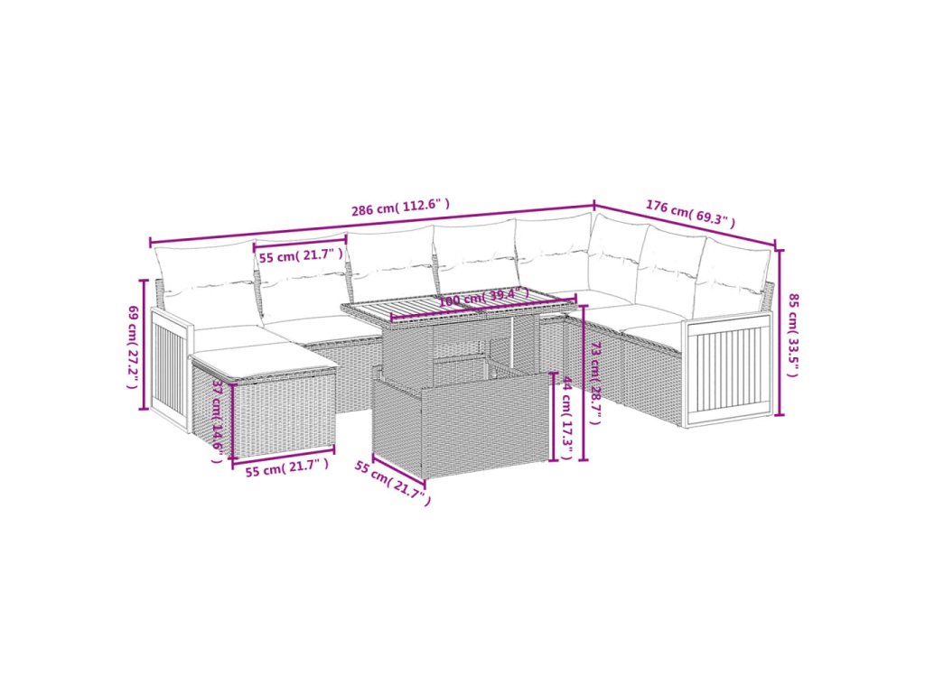 - Modulární design: Tato sada venkovního nábytku se vyznačuje modulární konstrukcí, je tedy zcela flexibilní a lze ji snadno přemisťovat, takže si můžete uspořádat venkovní nábytek dle vašich potřeb.