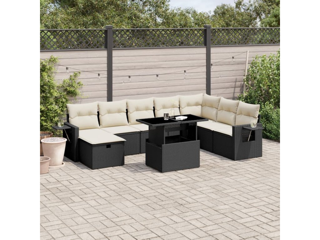 9dílná zahradní sedací souprava s poduškami černá polyratan 3275026