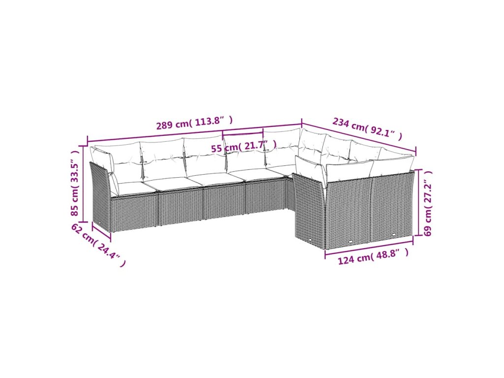 9dílná zahradní sedací souprava s poduškami hnědá polyratan 3218173