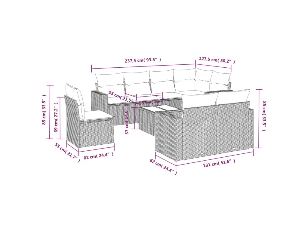 9dílná zahradní sedací souprava s poduškami hnědá polyratan 3219243