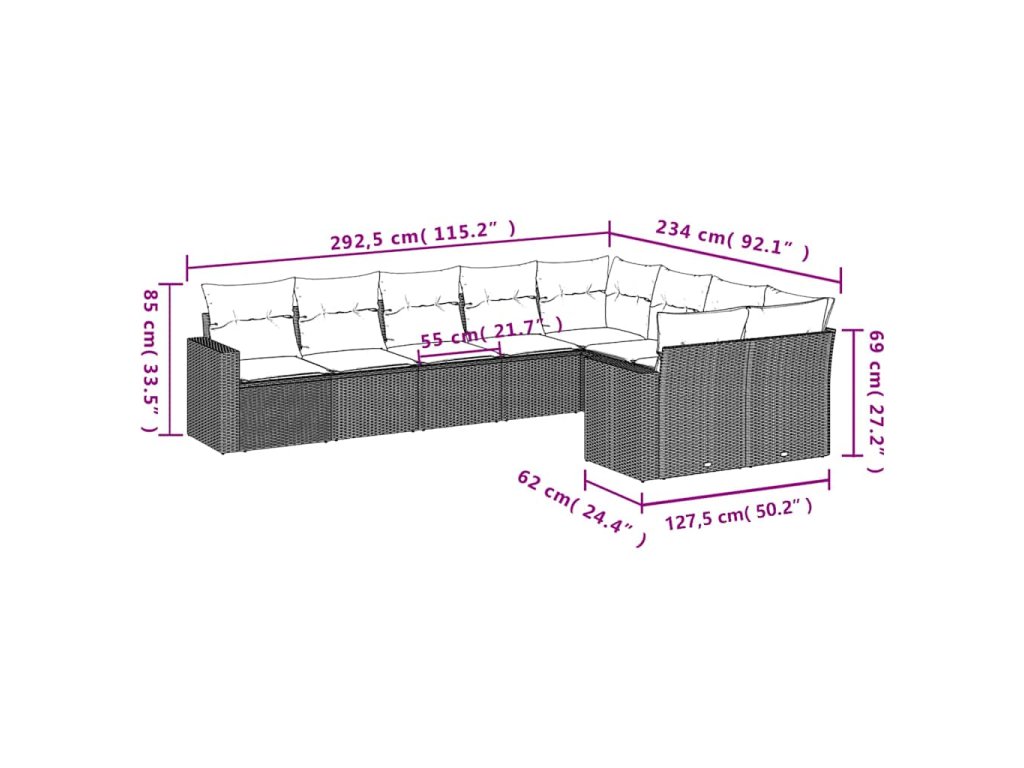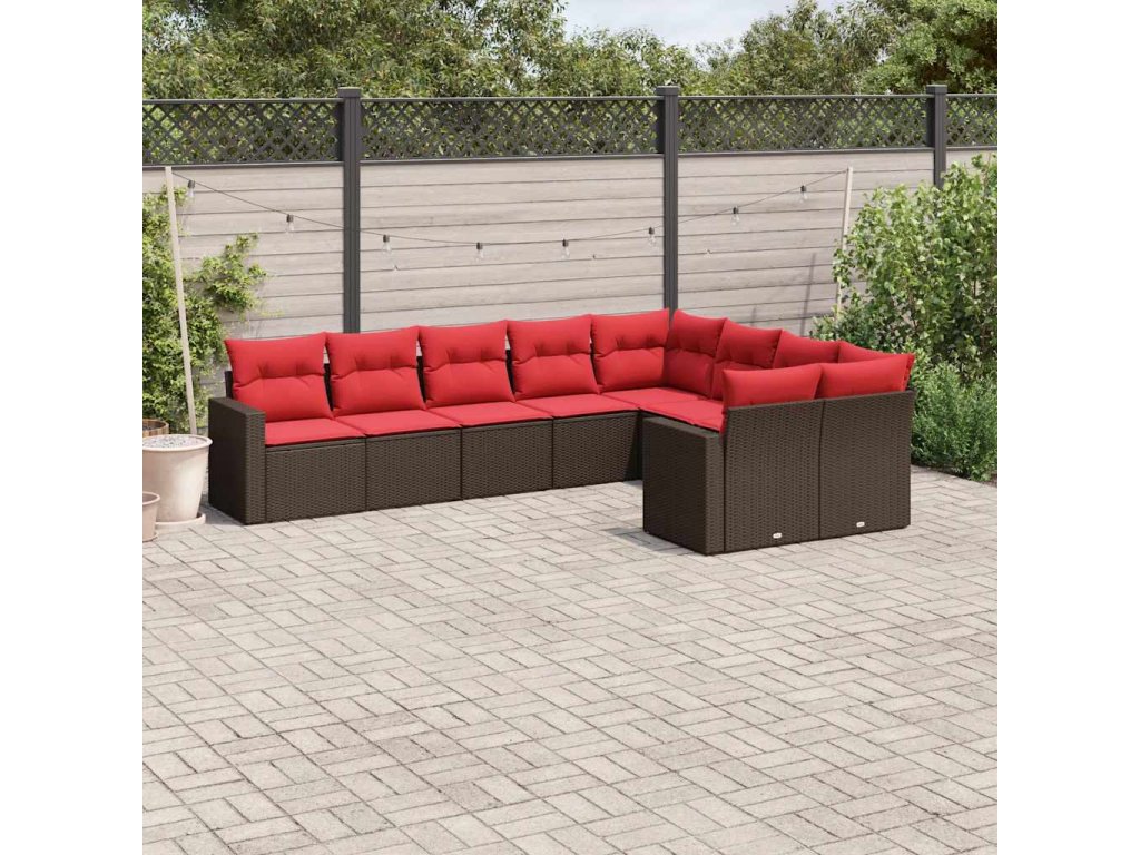 9dílná zahradní sedací souprava s poduškami hnědá polyratan 3219434