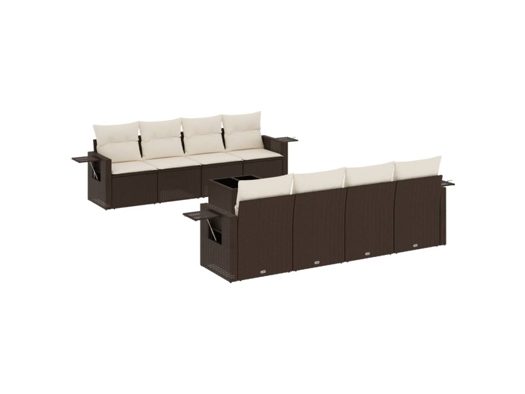 9dílná zahradní sedací souprava s poduškami hnědá polyratan 3219952