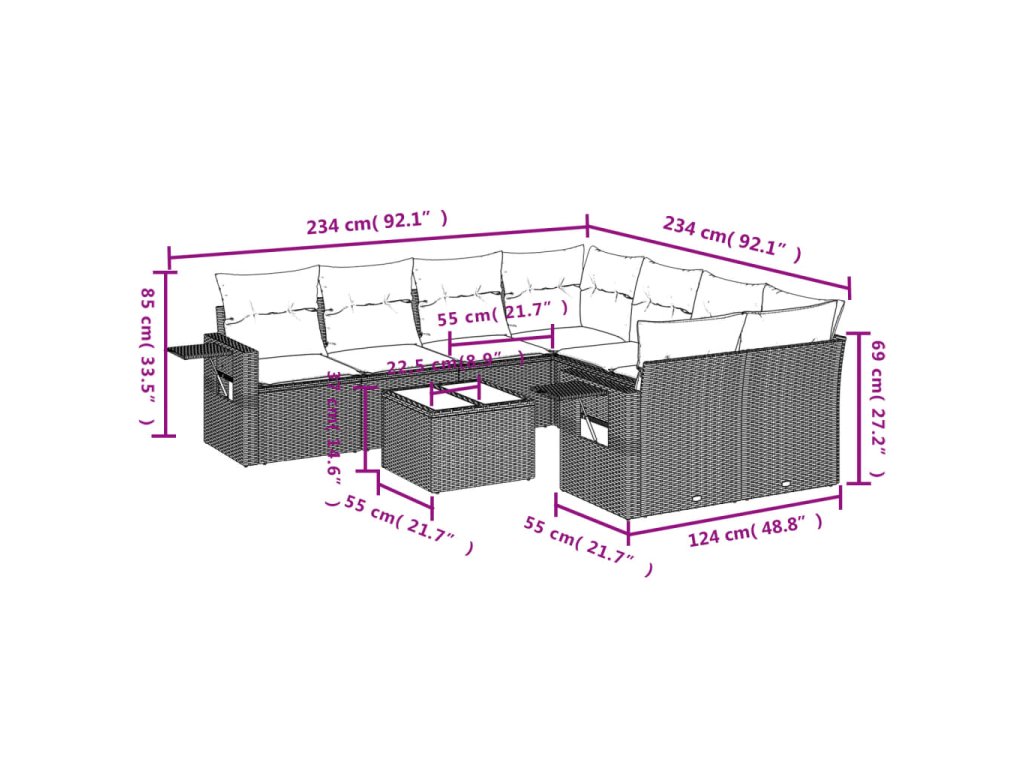 9dílná zahradní sedací souprava s poduškami hnědá polyratan 3219962