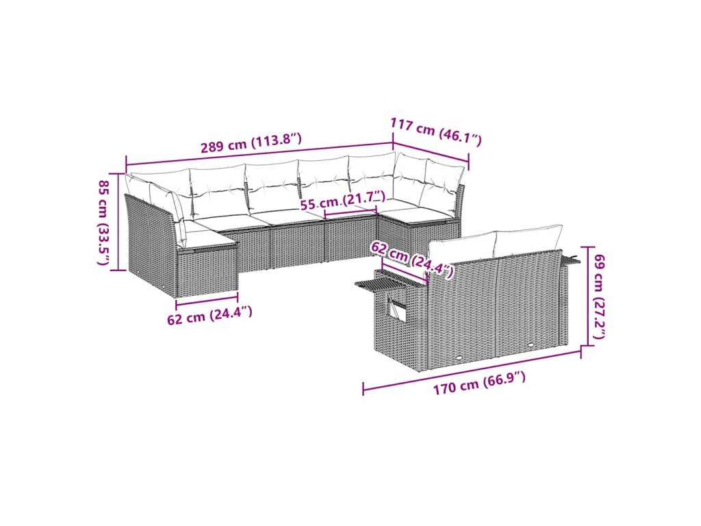 Tato zahradní sedací souprava je dokonalým doplňkem vaší zahrady, terasy nebo dvorku a poskytne vám pohodlné a příjemné místo, kde si můžete povídat s rodinou a přáteli nebo jen tak odpočívat a užívat si pobyt venku.