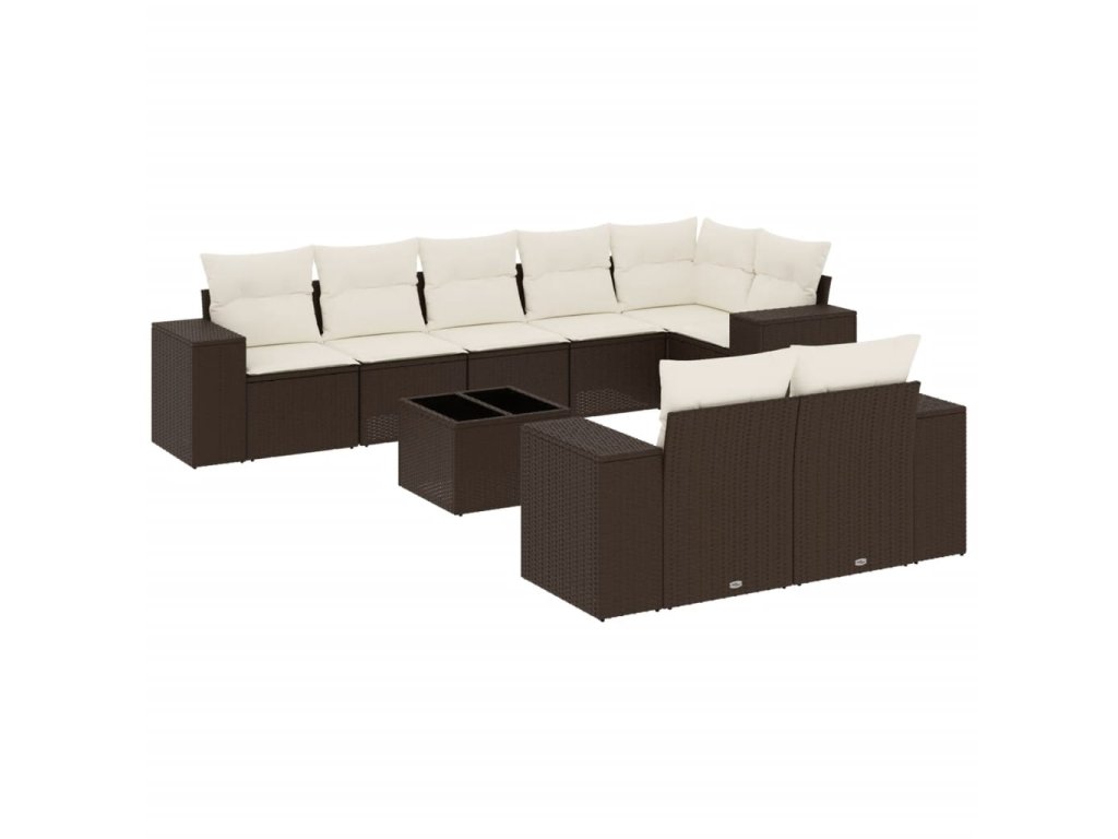 9dílná zahradní sedací souprava s poduškami hnědá polyratan 3222832