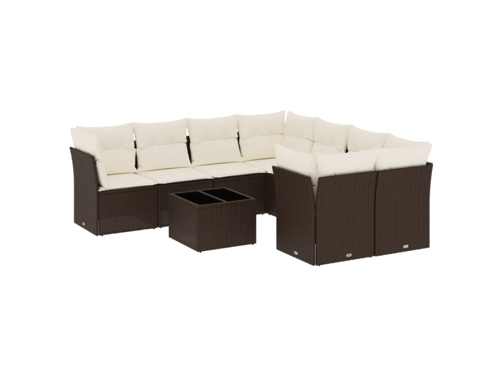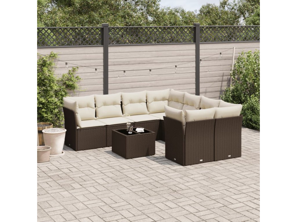 9dílná zahradní sedací souprava s poduškami hnědá polyratan 3249162
