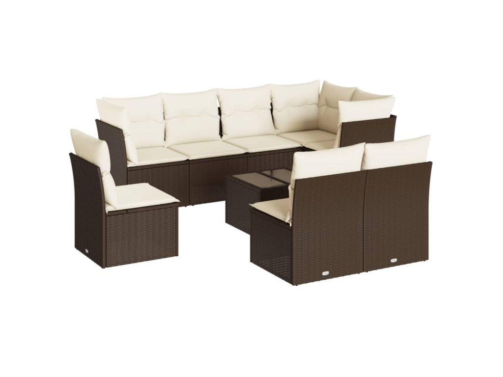 9dílná zahradní sedací souprava s poduškami hnědá polyratan 3249612