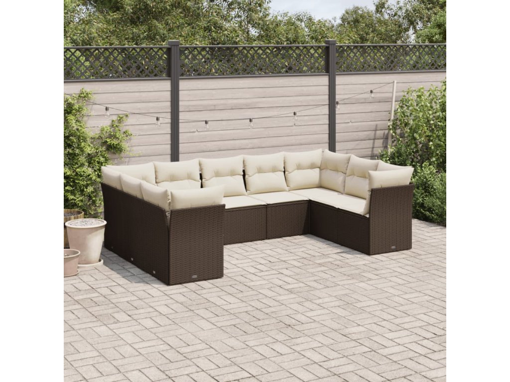 9dílná zahradní sedací souprava s poduškami hnědá polyratan 3249972