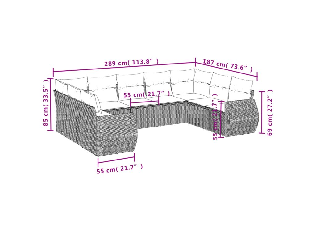 9dílná zahradní sedací souprava s poduškami hnědá polyratan 3254140