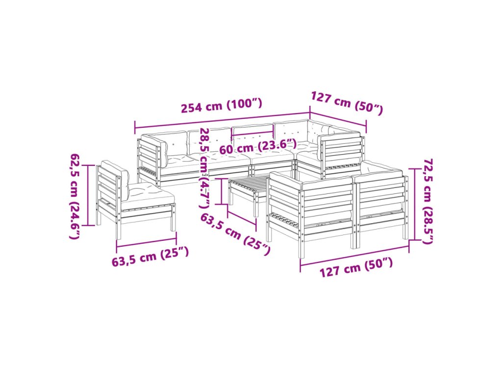 9dílná zahradní sedací souprava s poduškami masivní douglaska 3299517