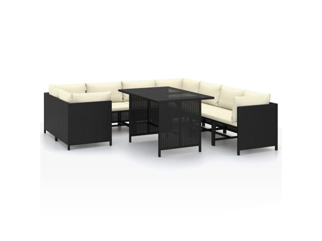 9dílná zahradní sedací souprava s poduškami polyratan černá 3059799