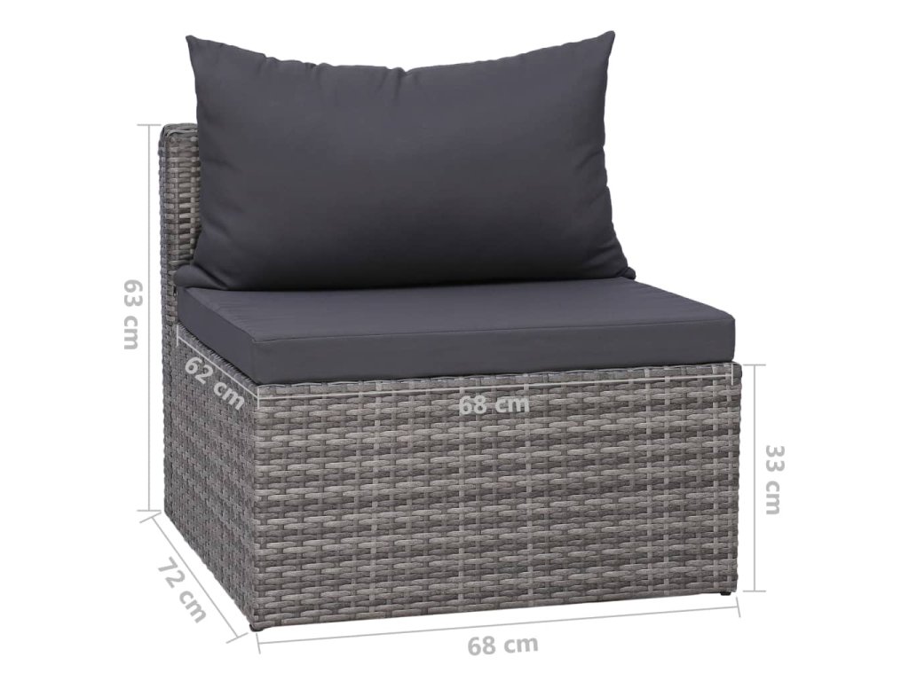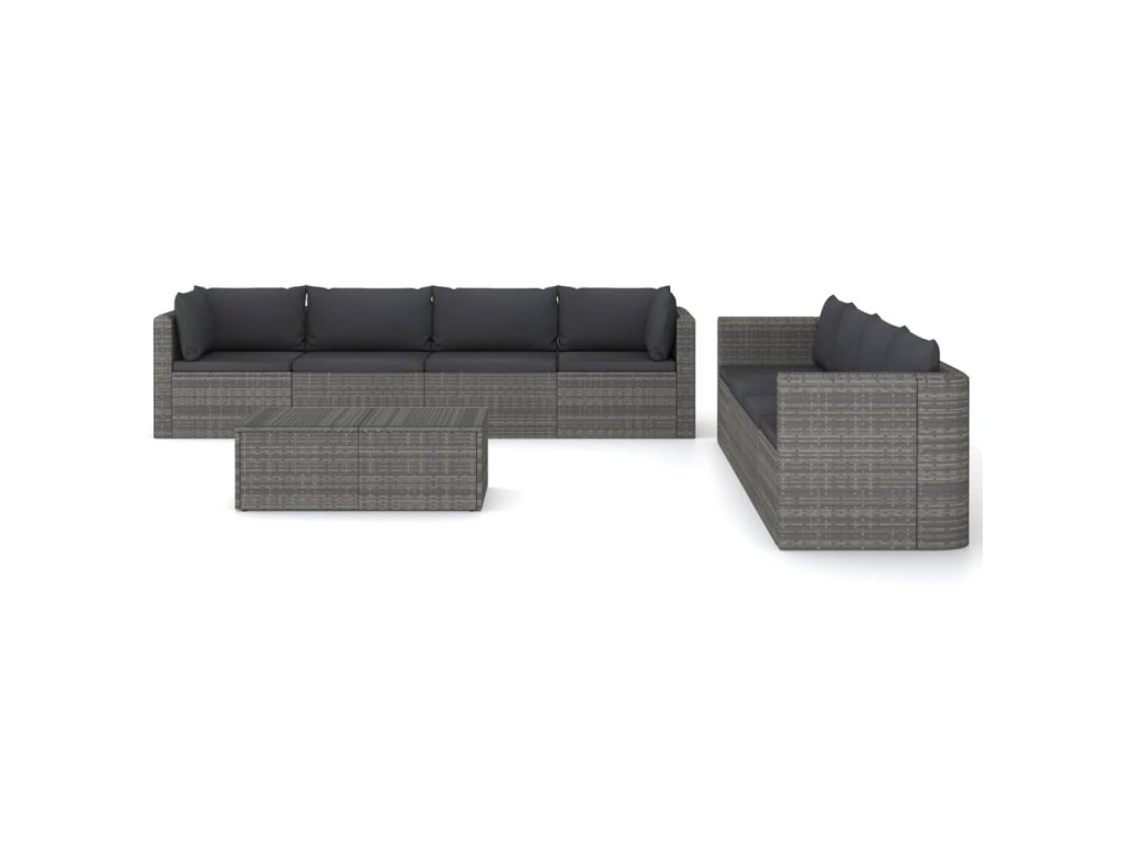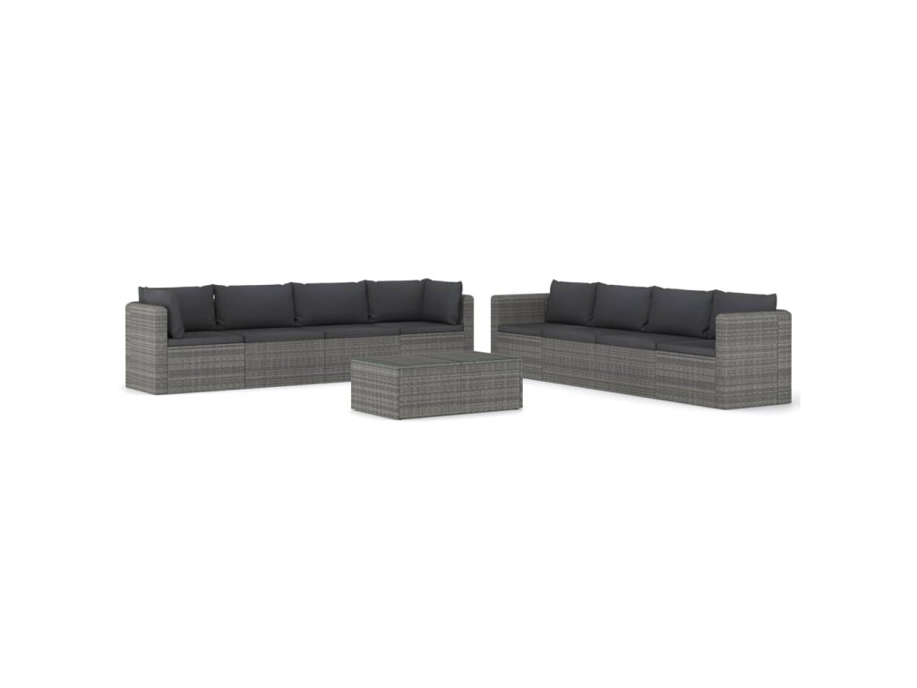9dílná zahradní sedací souprava s poduškami polyratan šedá 3059495
