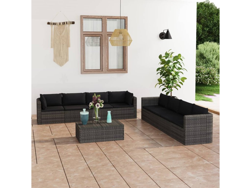 Zahradní sedací souprava je vyrobená z voděodolného polyratanu, který se snadno udržuje čistý. Je pevná a odolná a vhodná pro každodenní venkovní použití. Sada obsahuje mimořádně pohodlné, silně polstrované podušky na sedáky a polštáře za záda, jež vám umožní užívat si stejného pohodlí jako ve vašem obývacím pokoji. Polyesterové potahy jsou nenáročné na údržbu a dají se jednoduše sejmout a vyprat. Polyratanová souprava je velmi flexibilní, můžete ji tedy snadno přestavět tak, aby krásně zapadla do každého prostředí.