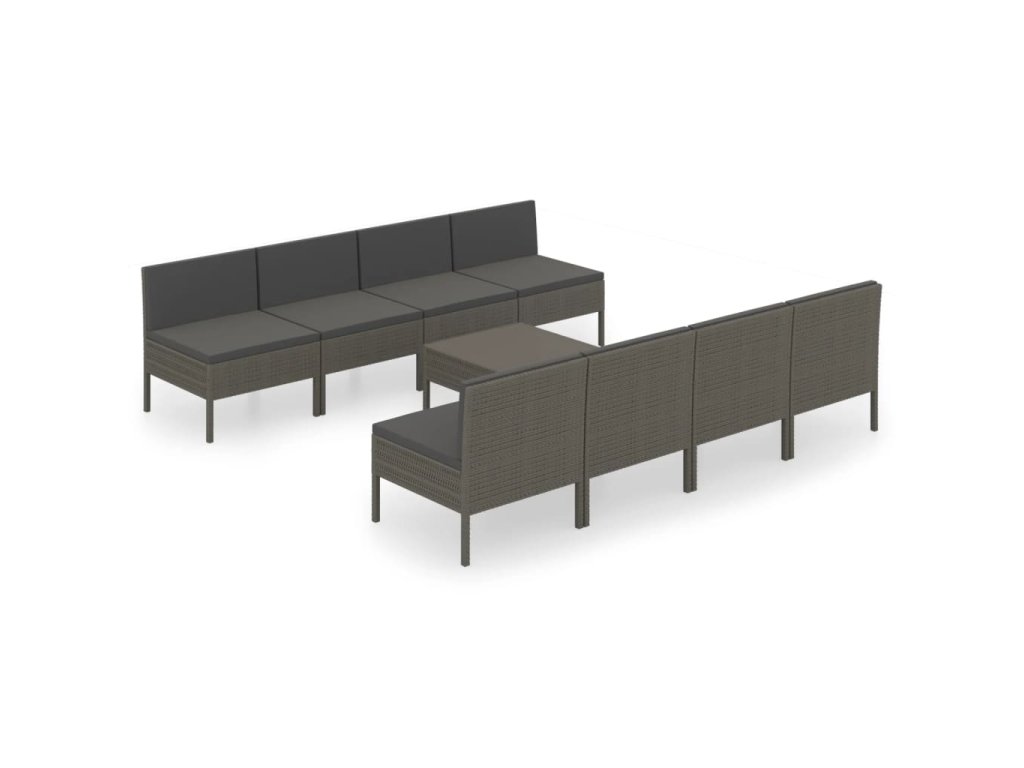 9dílná zahradní sedací souprava s poduškami polyratan šedá 3094334