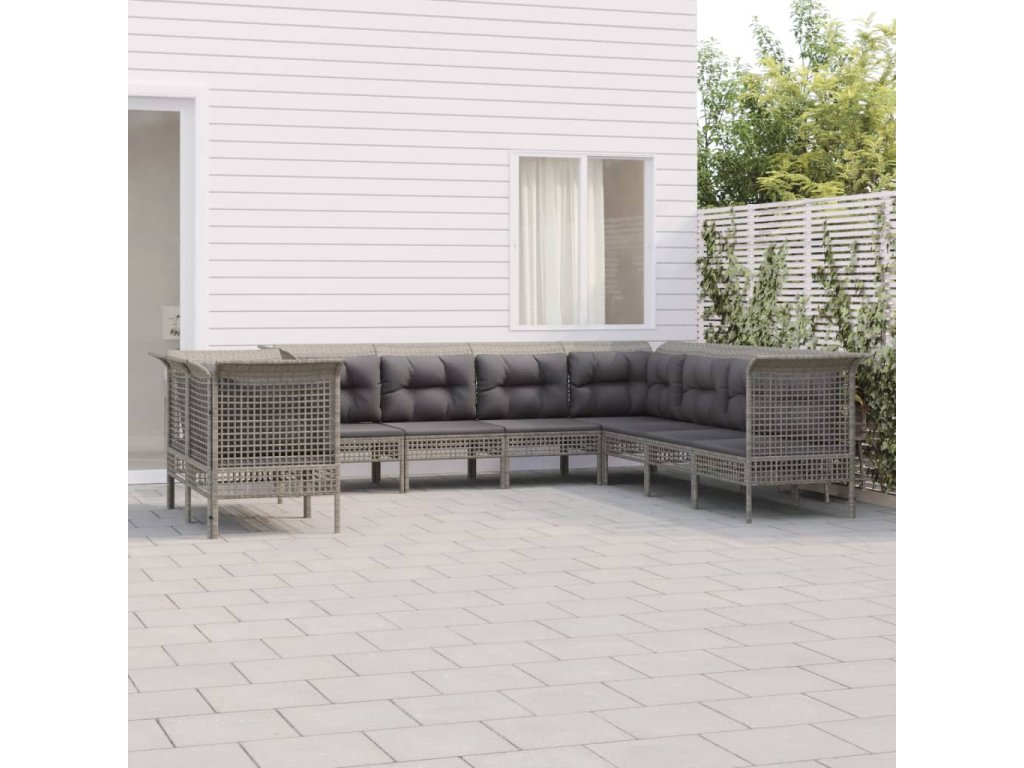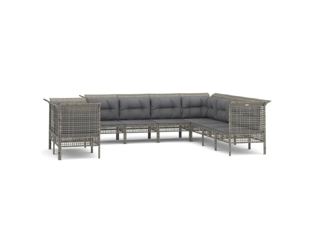 9dílná zahradní sedací souprava s poduškami šedá polyratan 3187534