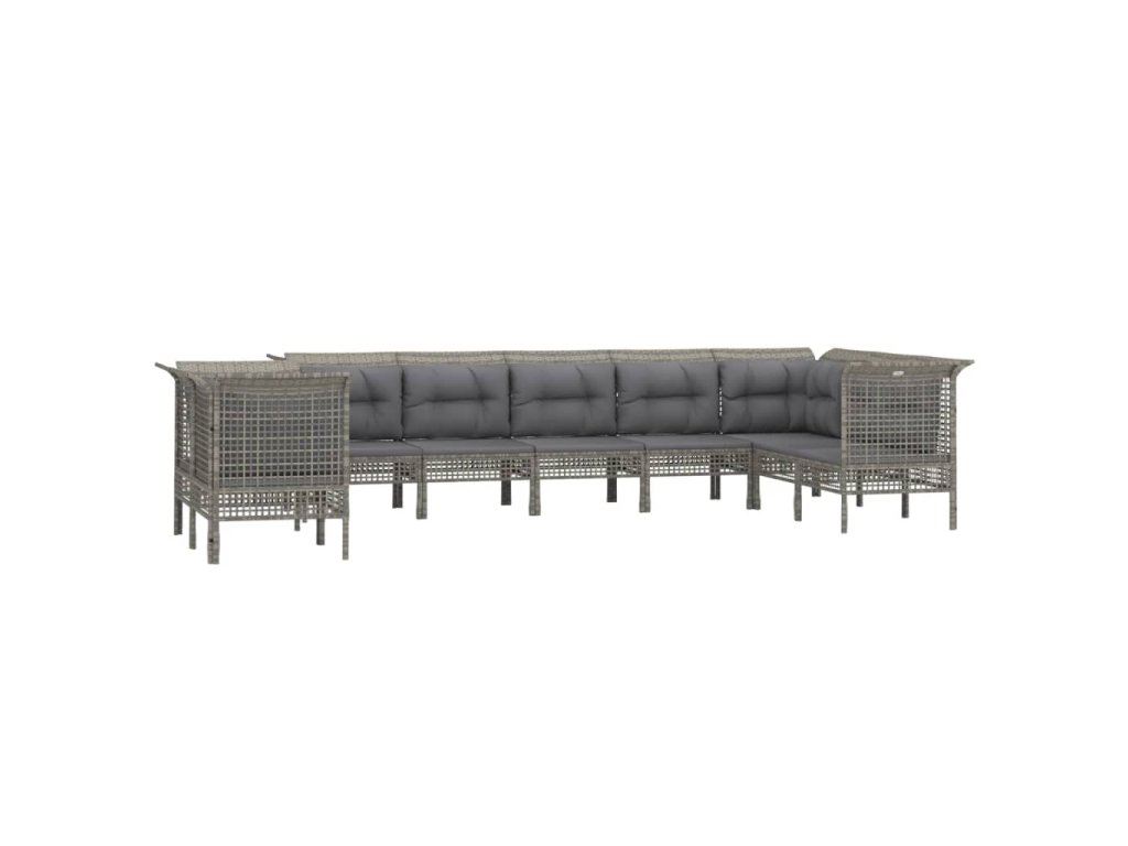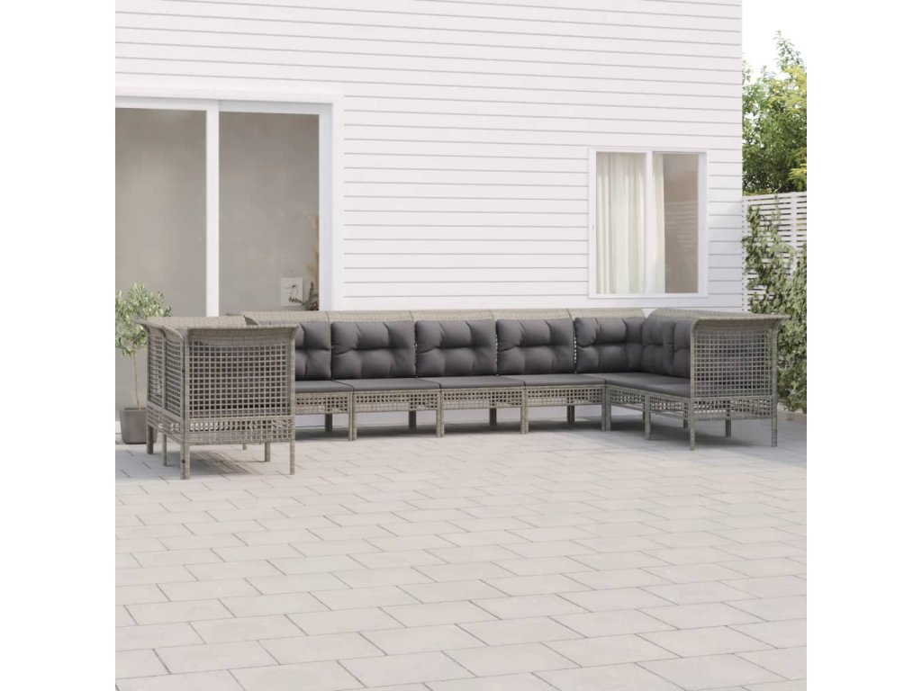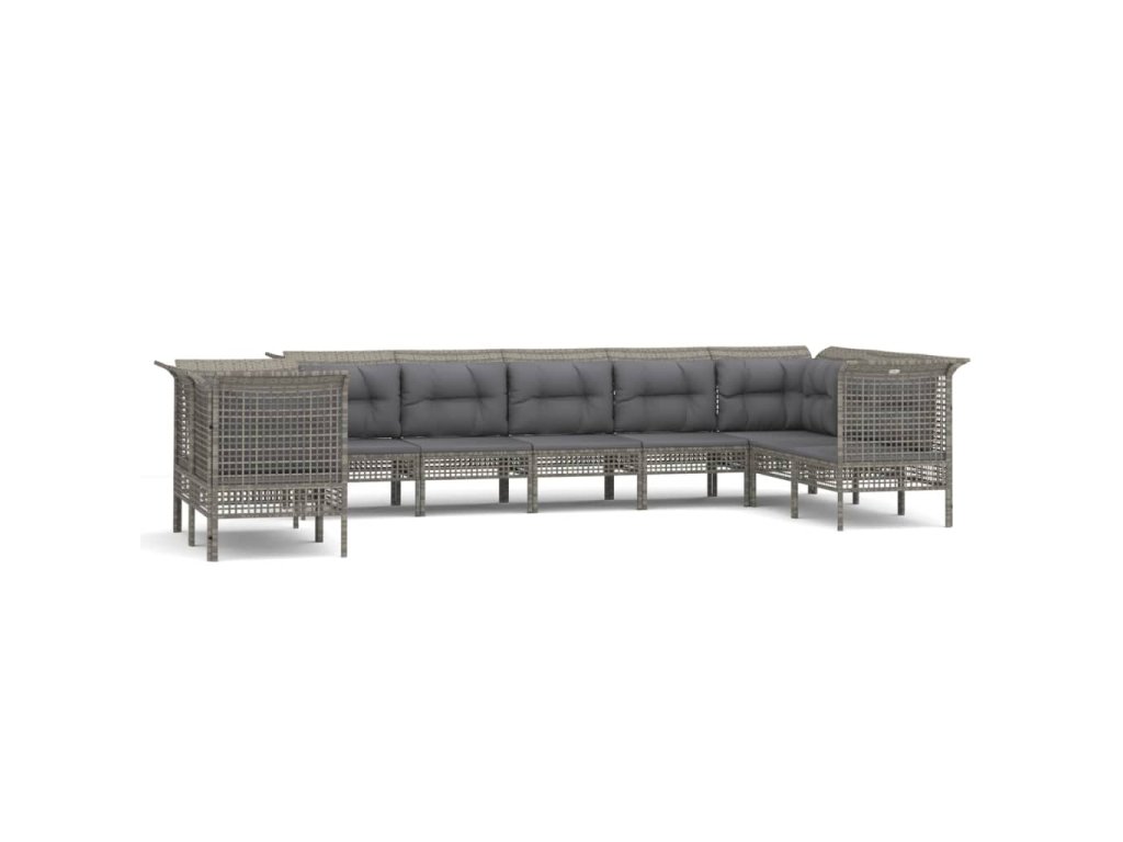 9dílná zahradní sedací souprava s poduškami šedá polyratan 3187547