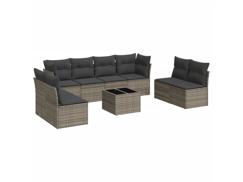 9dílná zahradní sedací souprava s poduškami šedá polyratan 3217460