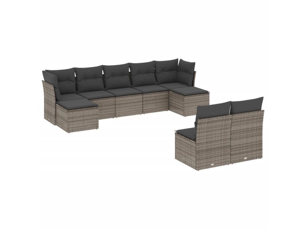 9dílná zahradní sedací souprava s poduškami šedá polyratan 3218270