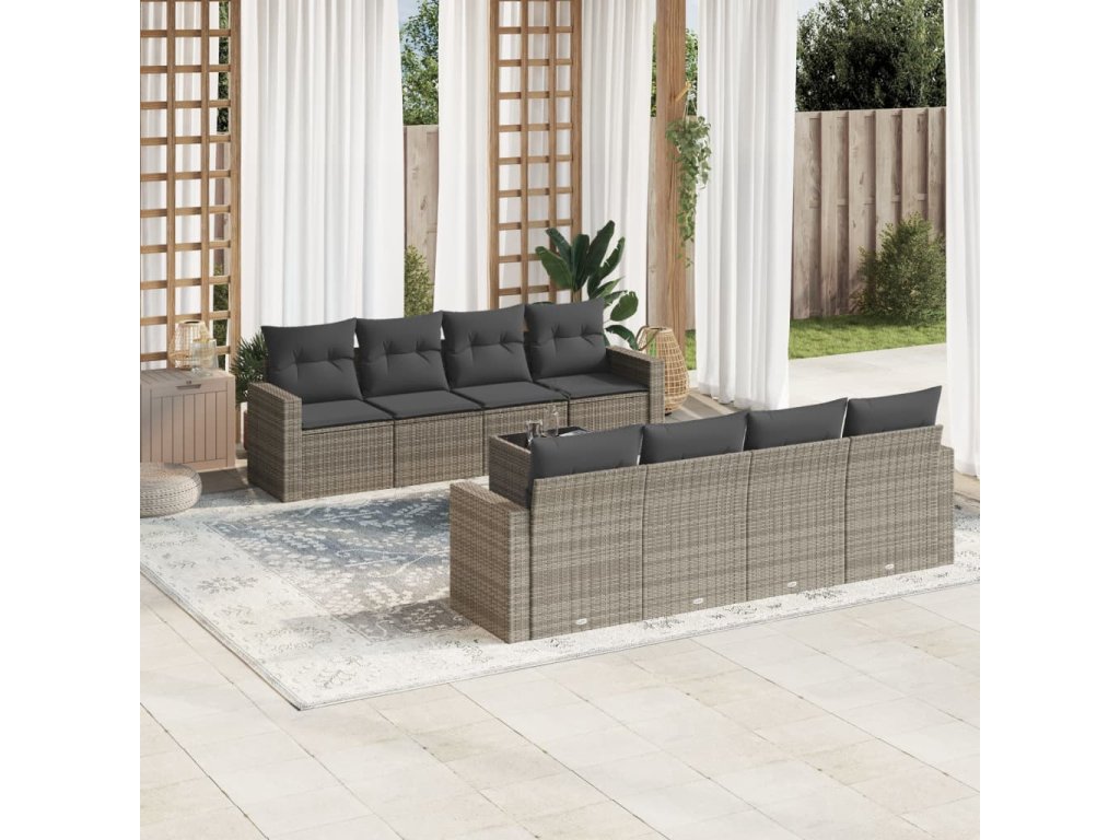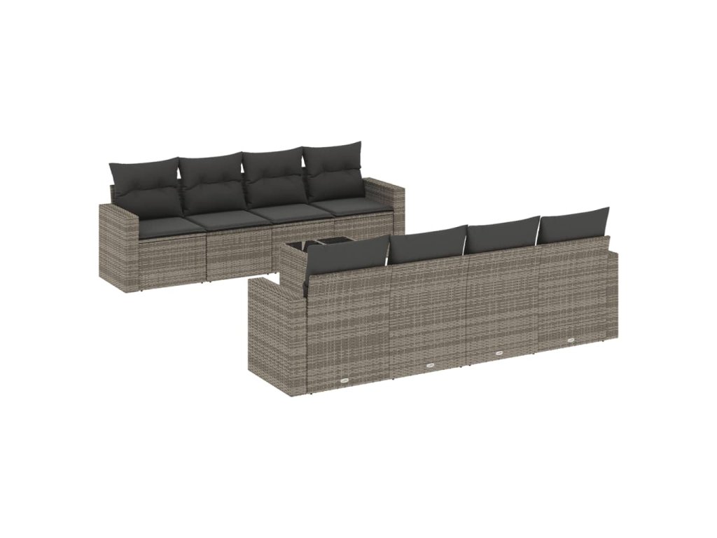 9dílná zahradní sedací souprava s poduškami šedá polyratan 3218740