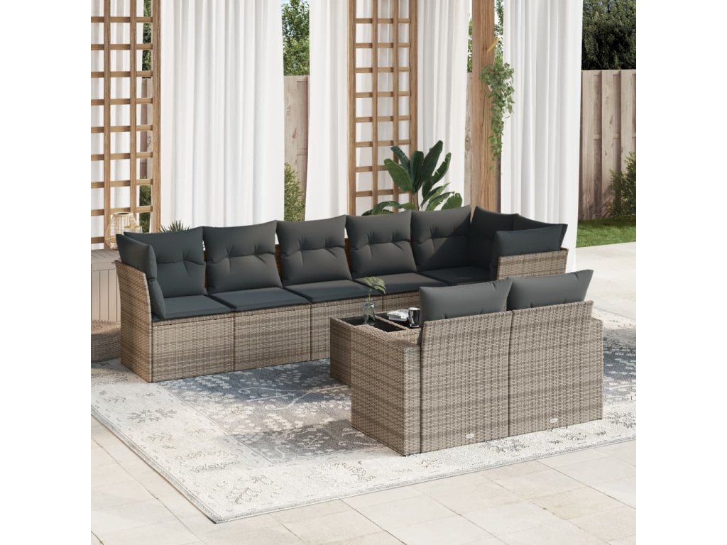 9dílná zahradní sedací souprava s poduškami šedá polyratan 3219220