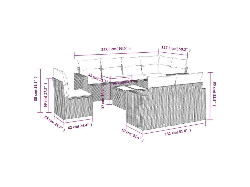 9dílná zahradní sedací souprava s poduškami šedá polyratan 3219240