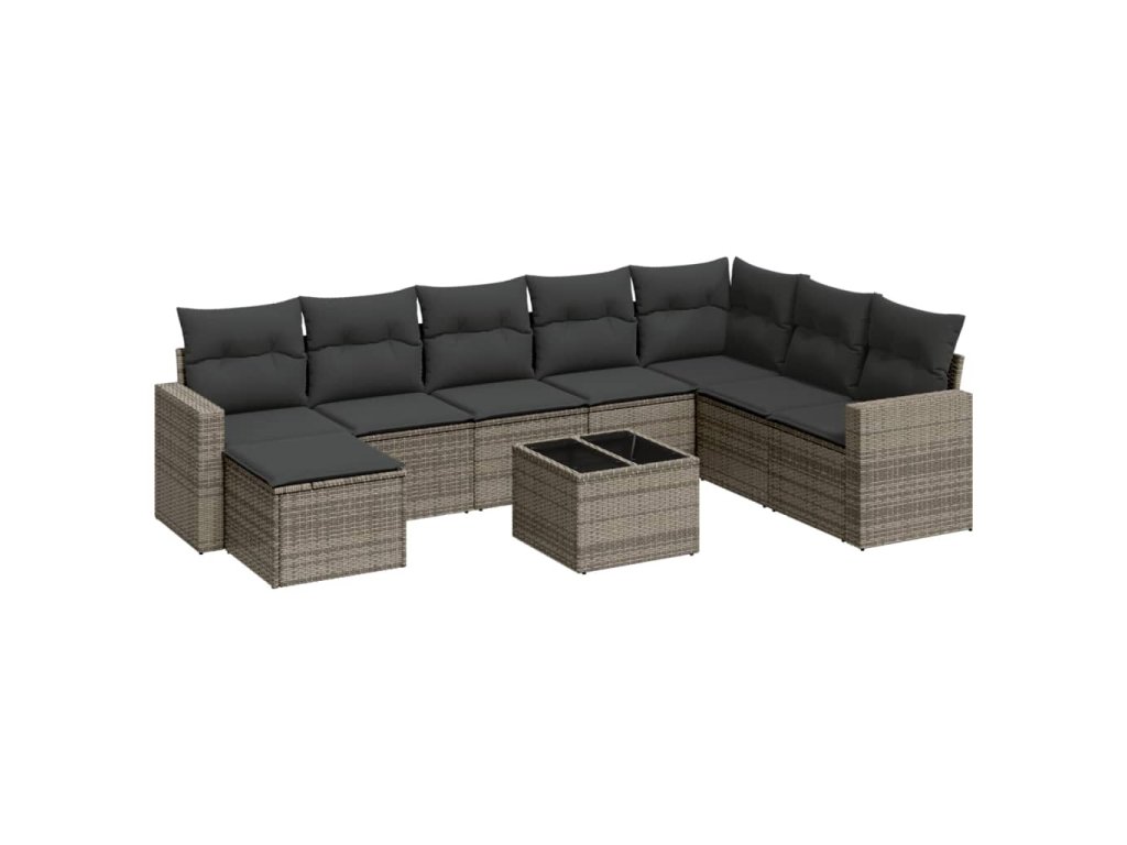 9dílná zahradní sedací souprava s poduškami šedá polyratan 3219360