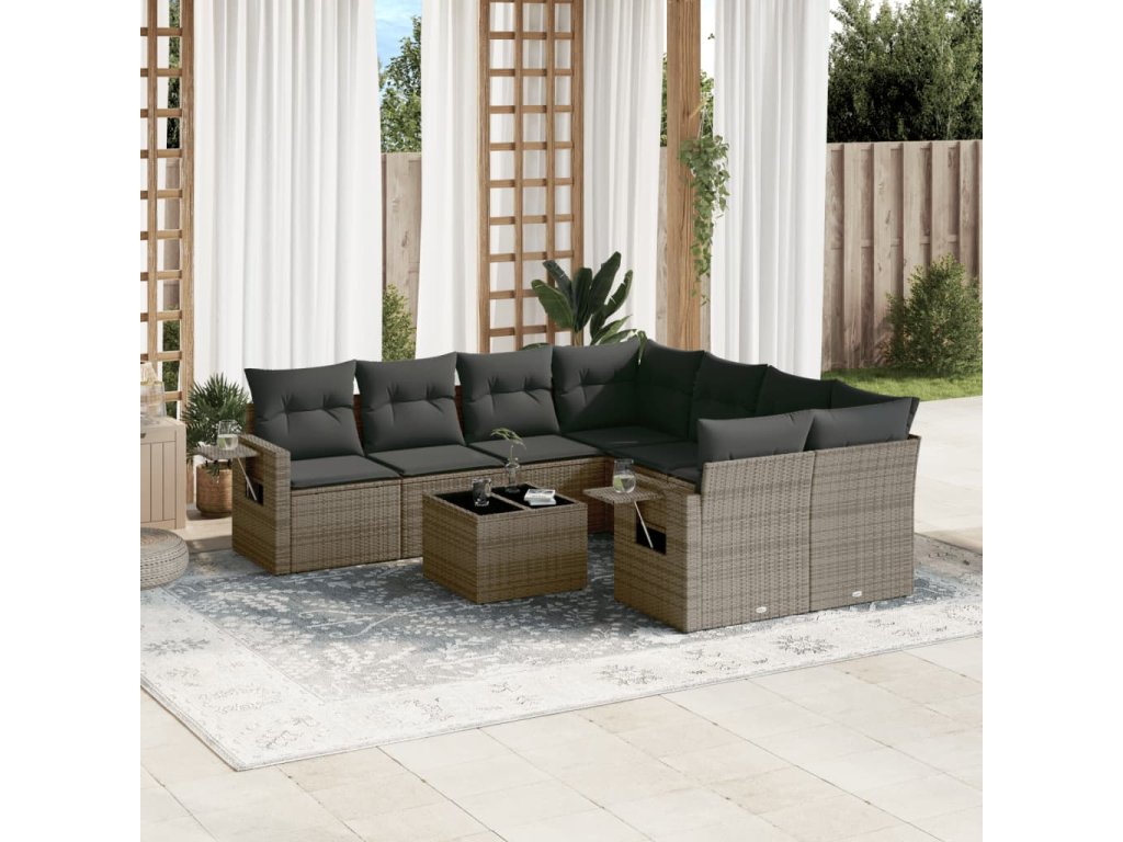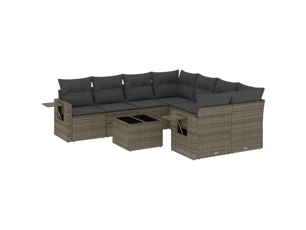 9dílná zahradní sedací souprava s poduškami šedá polyratan 3219959