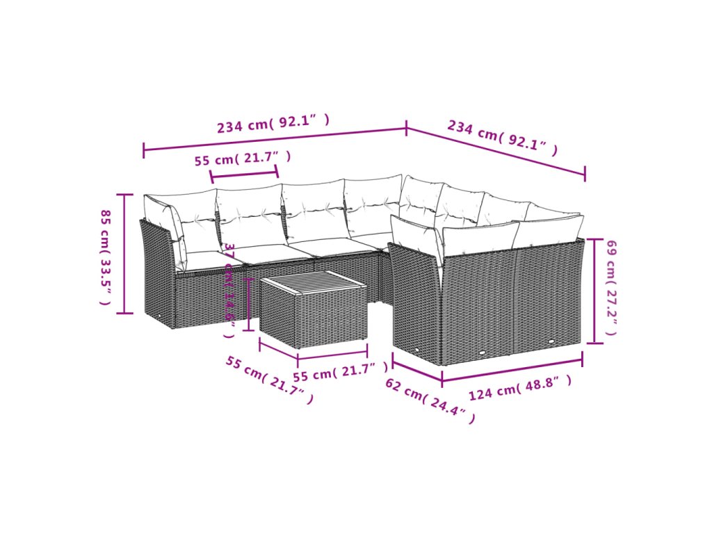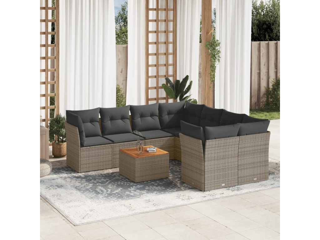 9dílná zahradní sedací souprava s poduškami šedá polyratan 3223533