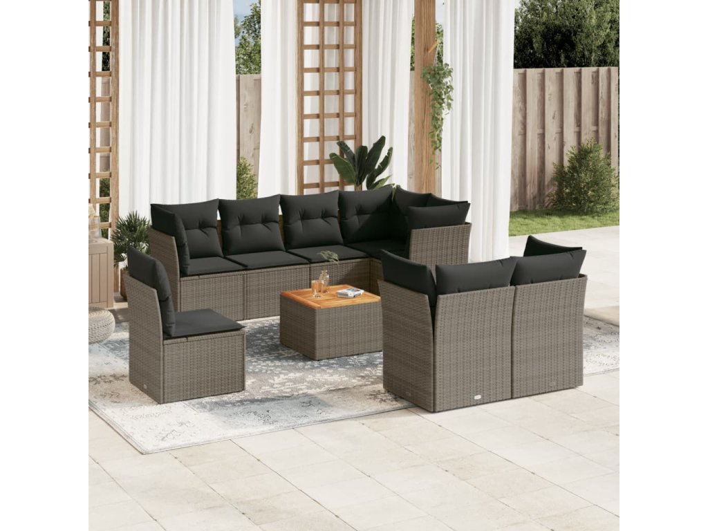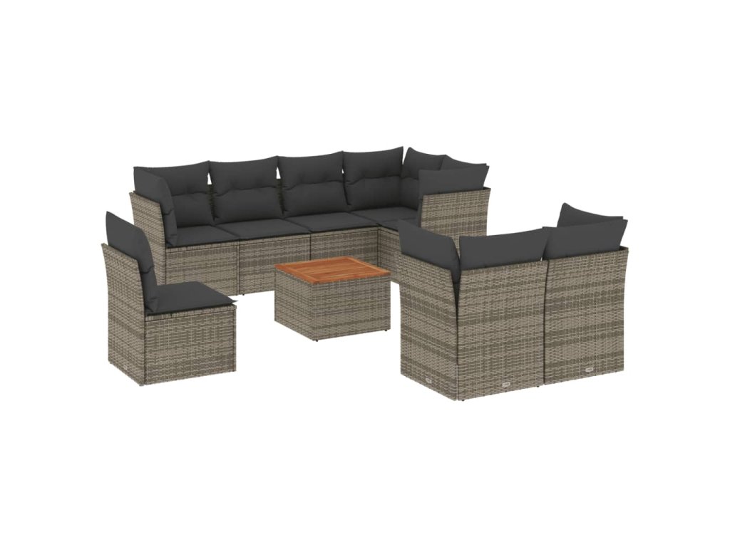 9dílná zahradní sedací souprava s poduškami šedá polyratan 3223743