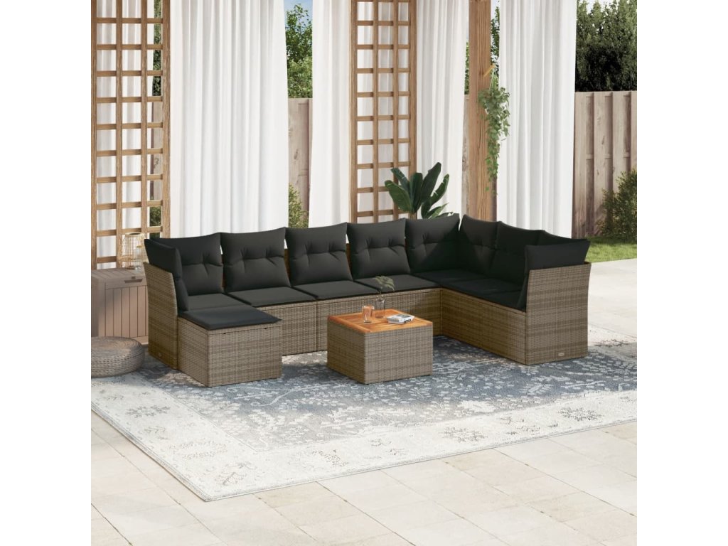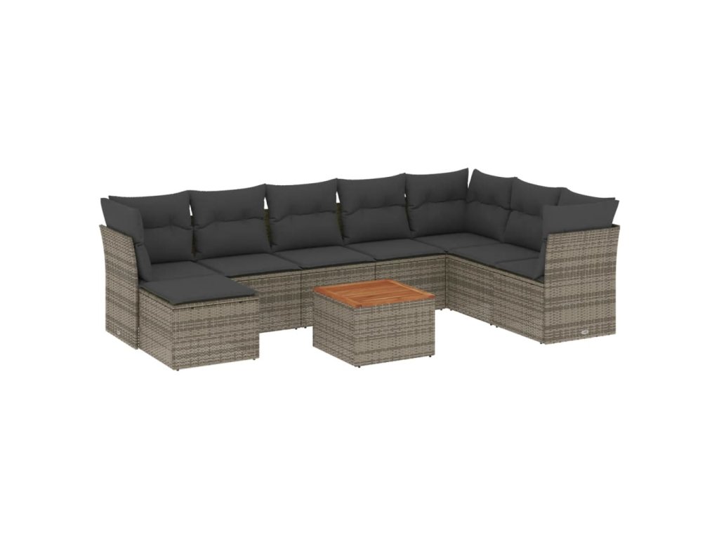 9dílná zahradní sedací souprava s poduškami šedá polyratan 3223785