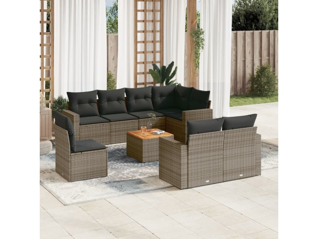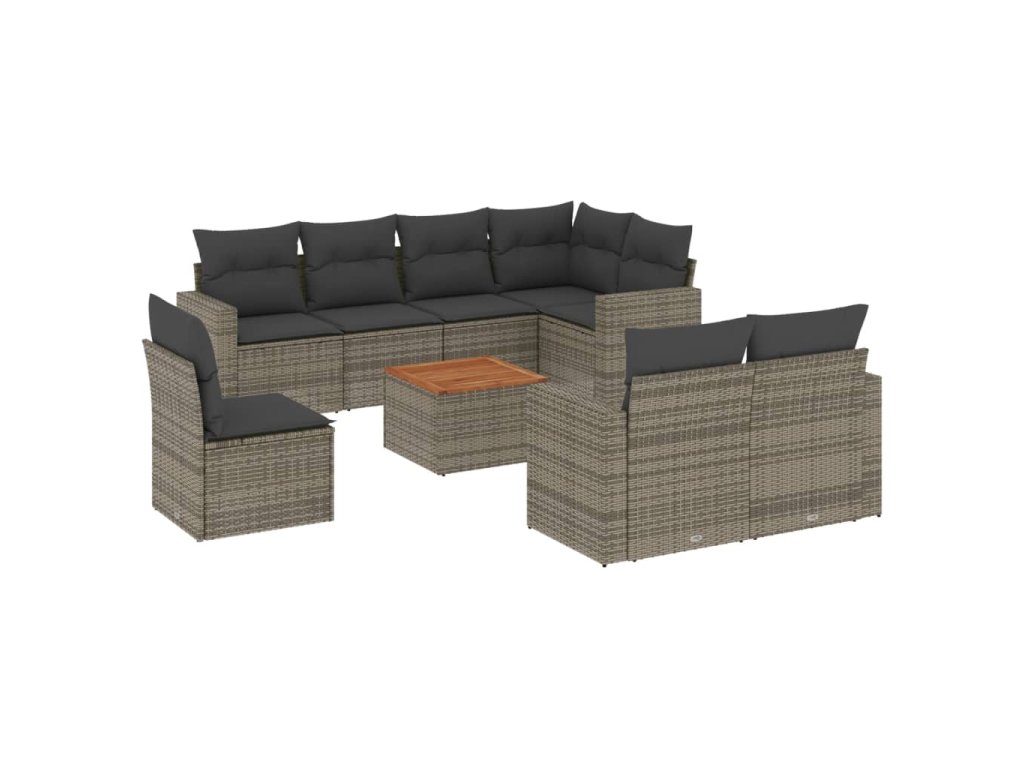 9dílná zahradní sedací souprava s poduškami šedá polyratan 3224219