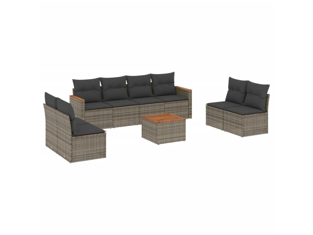 9dílná zahradní sedací souprava s poduškami šedá polyratan 3225899