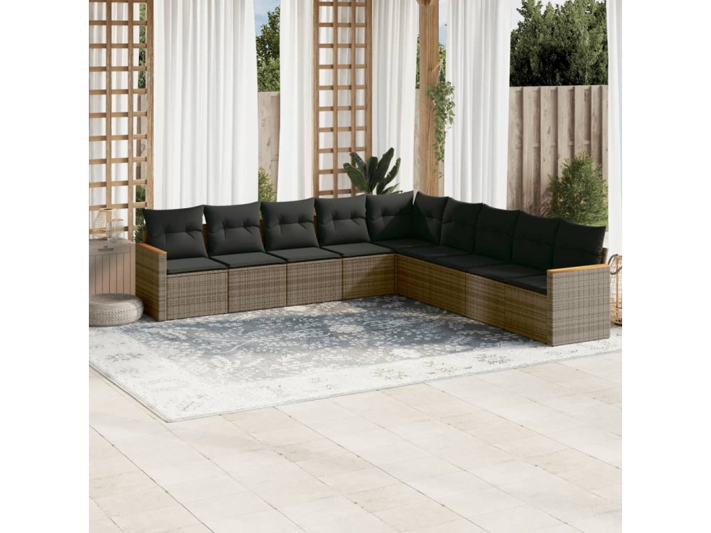 9dílná zahradní sedací souprava s poduškami šedá polyratan 3226060