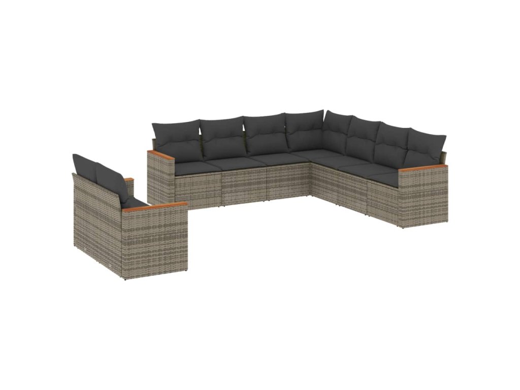 9dílná zahradní sedací souprava s poduškami šedá polyratan 3226102