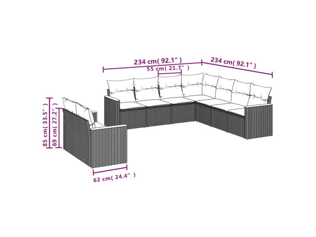 Tato zahradní sedací souprava je dokonalým doplňkem vaší zahrady, terasy nebo dvorku a poskytne vám pohodlné a příjemné místo, kde si můžete povídat s rodinou a přáteli nebo jen tak odpočívat a užívat si pobyt venku.