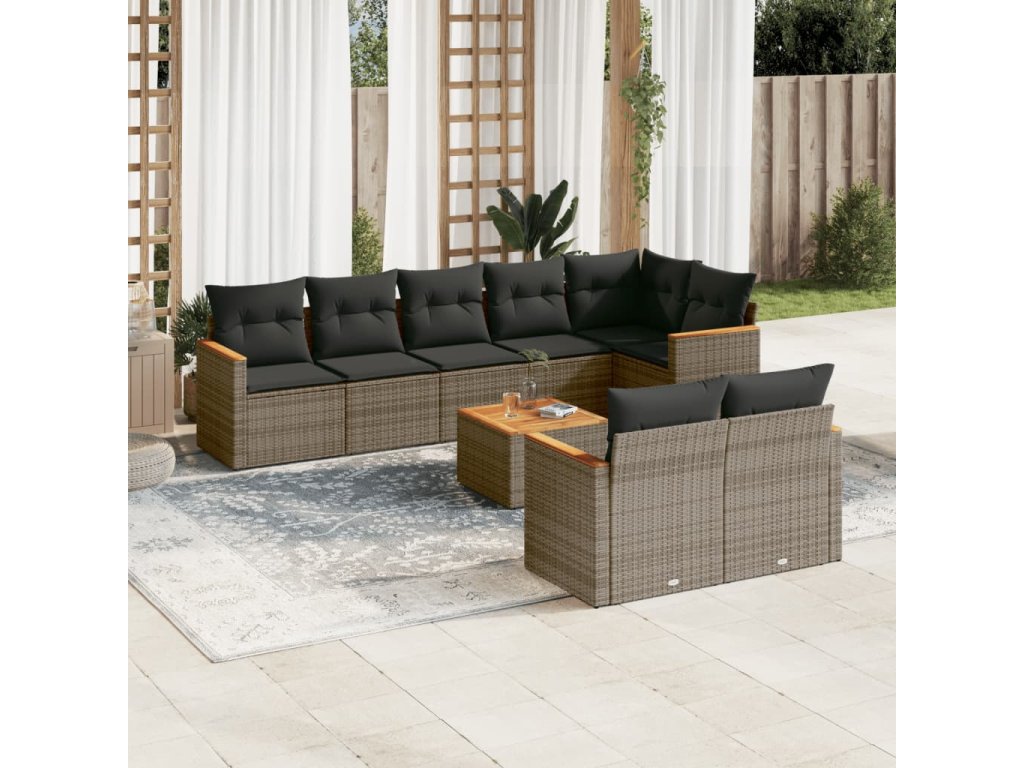 9dílná zahradní sedací souprava s poduškami šedá polyratan 3226158