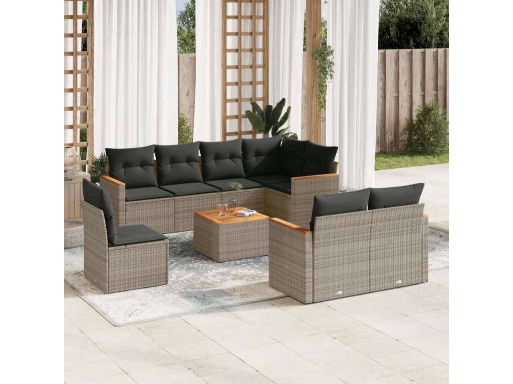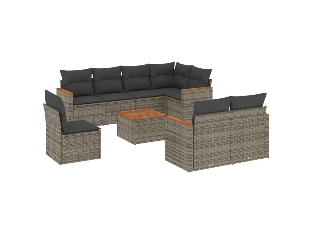 9dílná zahradní sedací souprava s poduškami šedá polyratan 3226172