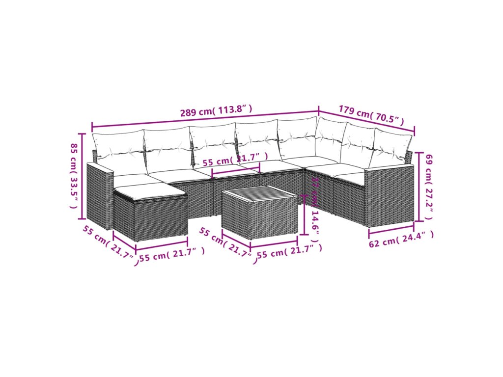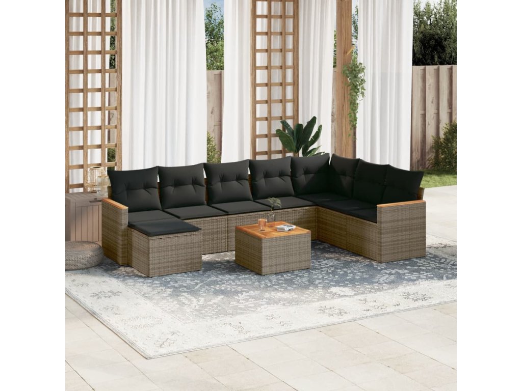 9dílná zahradní sedací souprava s poduškami šedá polyratan 3226256