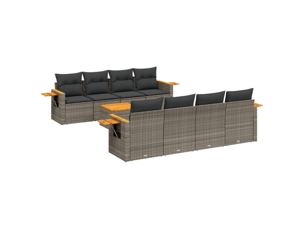 9dílná zahradní sedací souprava s poduškami šedá polyratan 3226662
