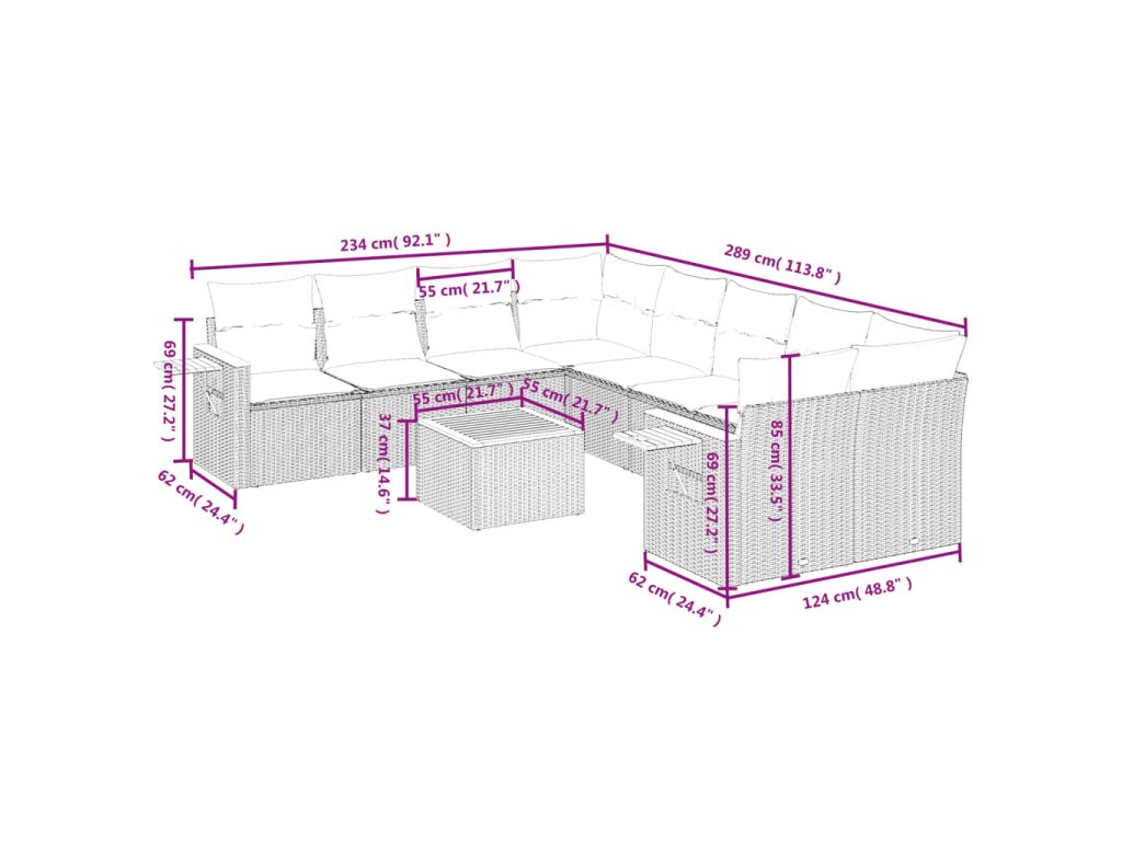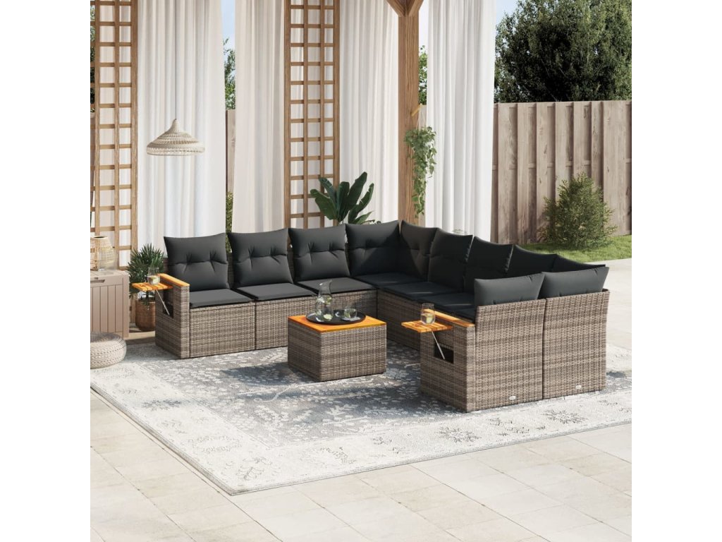 9dílná zahradní sedací souprava s poduškami šedá polyratan 3226669