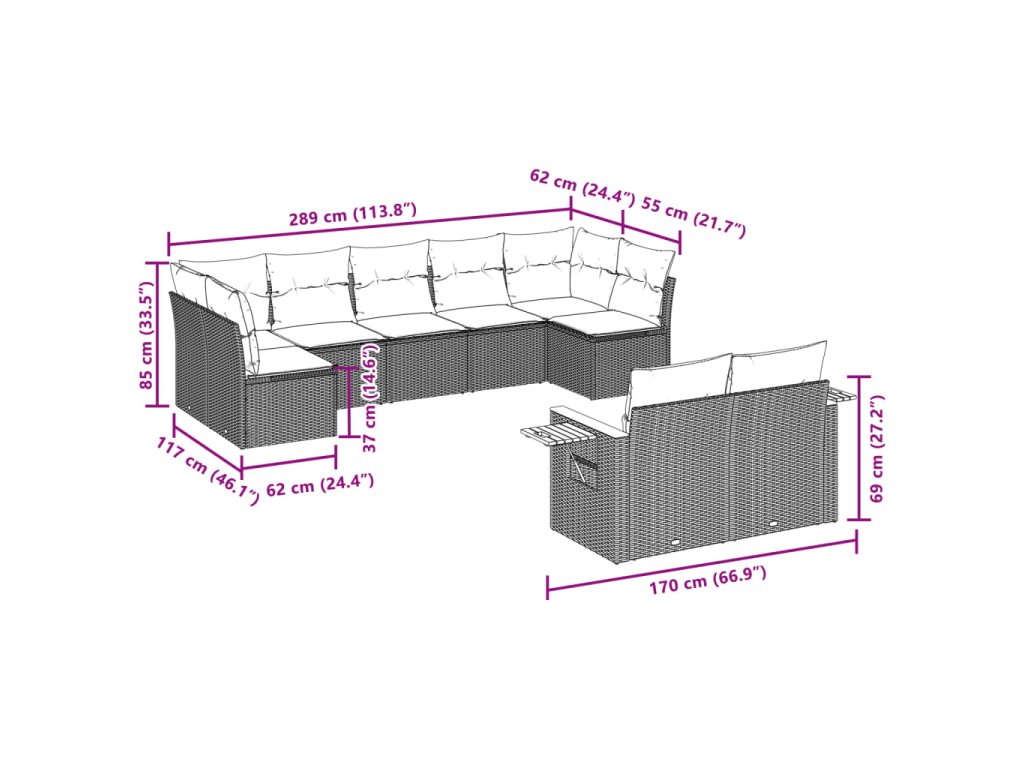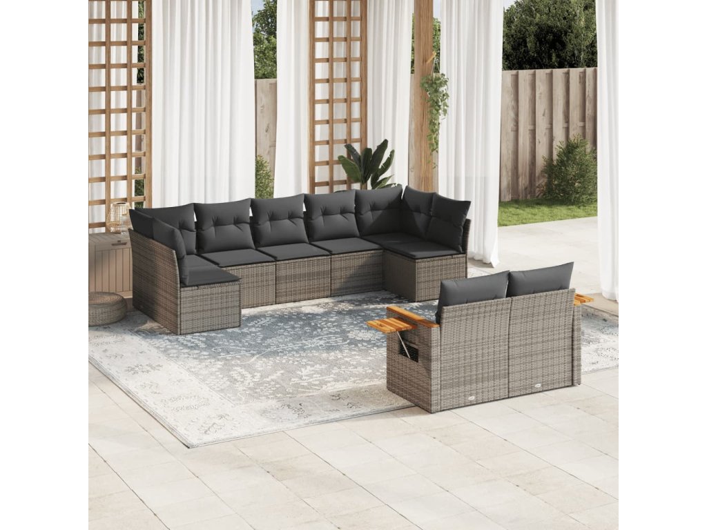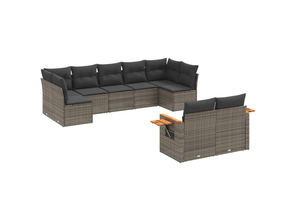 9dílná zahradní sedací souprava s poduškami šedá polyratan 3227131