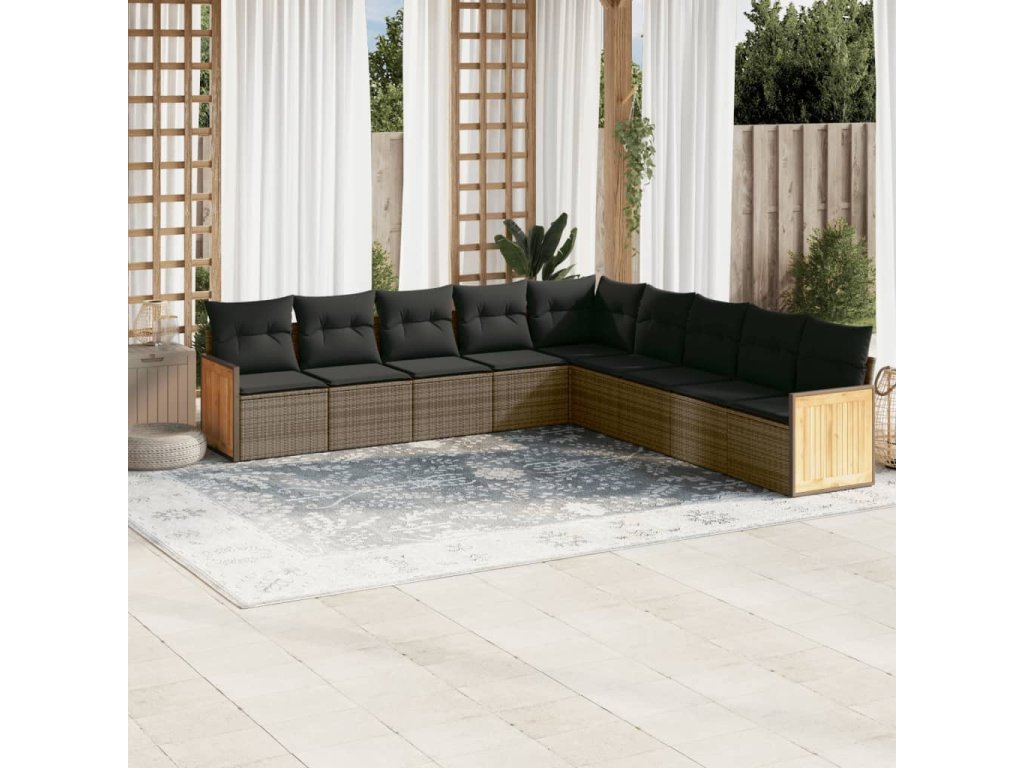 9dílná zahradní sedací souprava s poduškami šedá polyratan 3227740