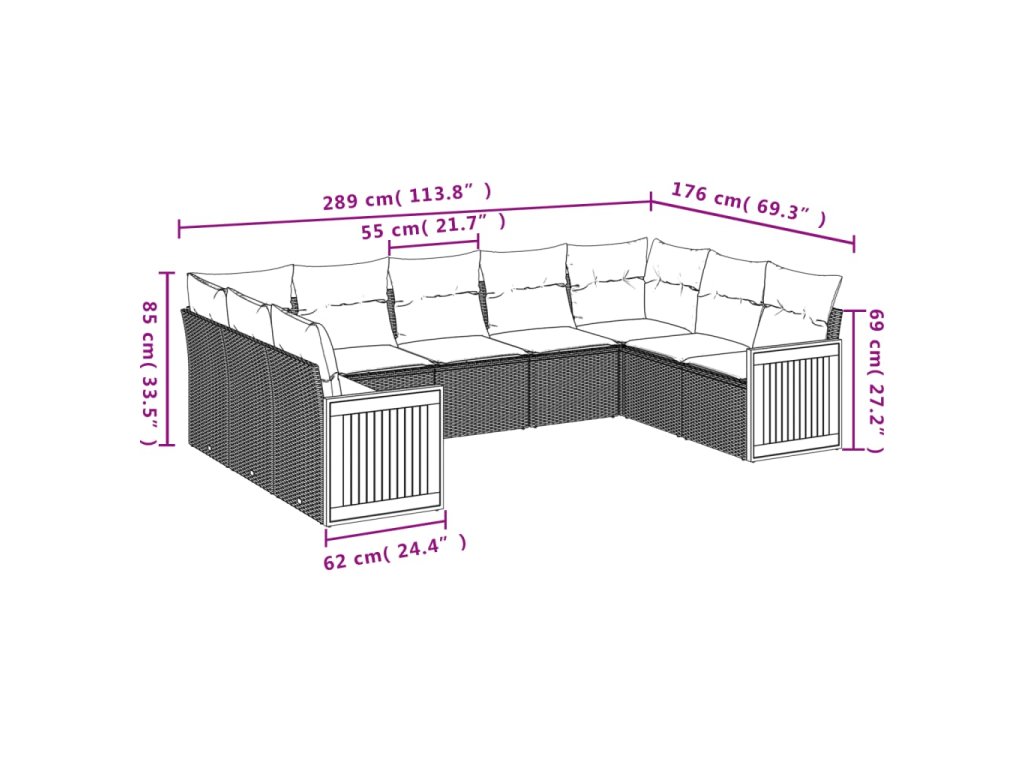 9dílná zahradní sedací souprava s poduškami šedá polyratan 3227957