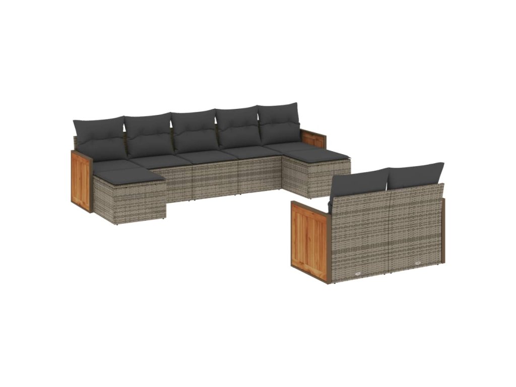 9dílná zahradní sedací souprava s poduškami šedá polyratan 3228083