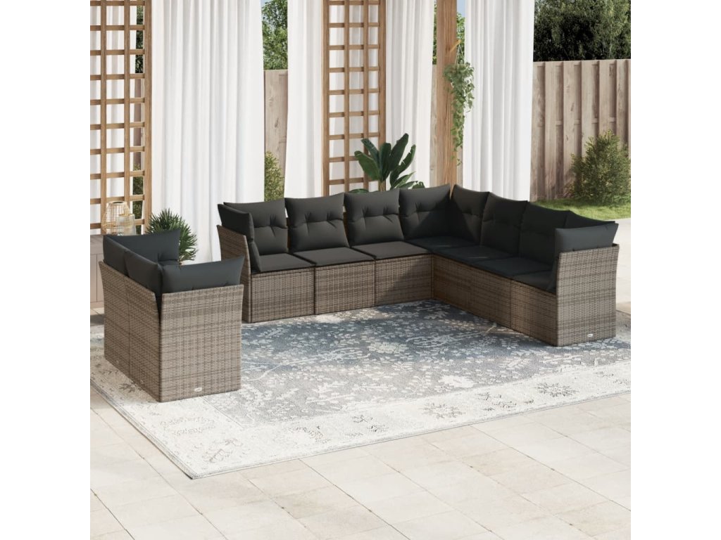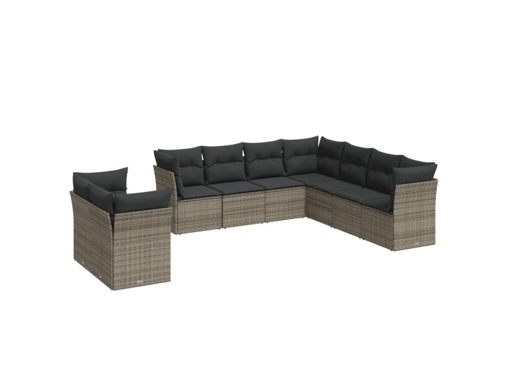 9dílná zahradní sedací souprava s poduškami šedá polyratan 3249679