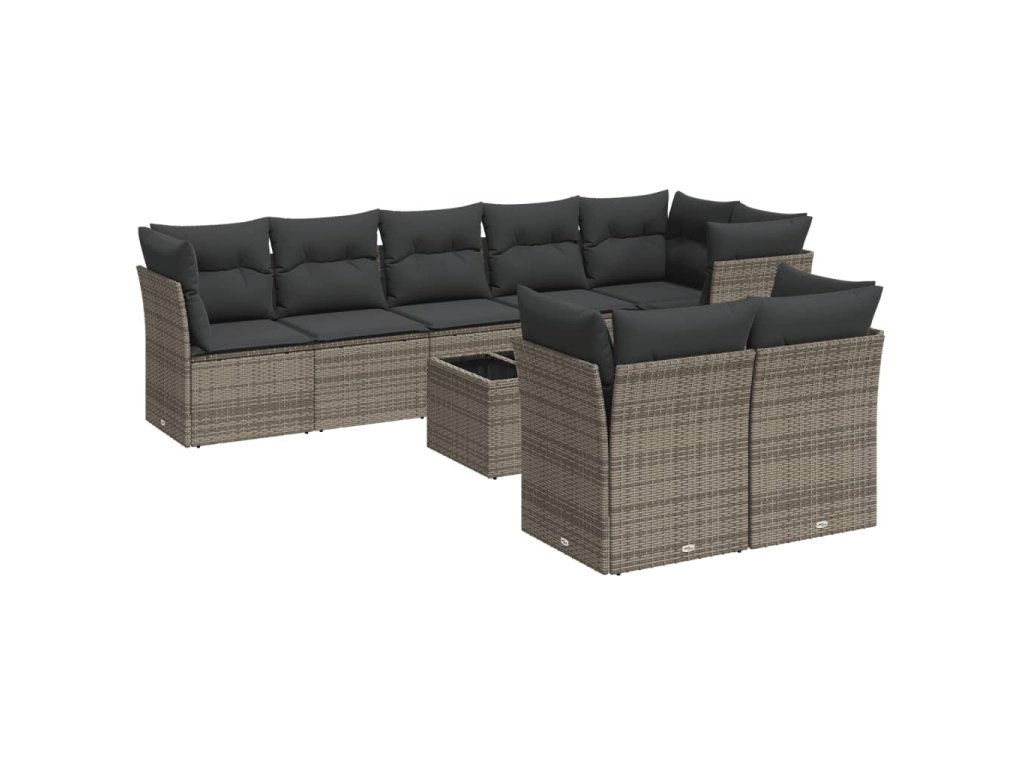 9dílná zahradní sedací souprava s poduškami šedá polyratan 3249759
