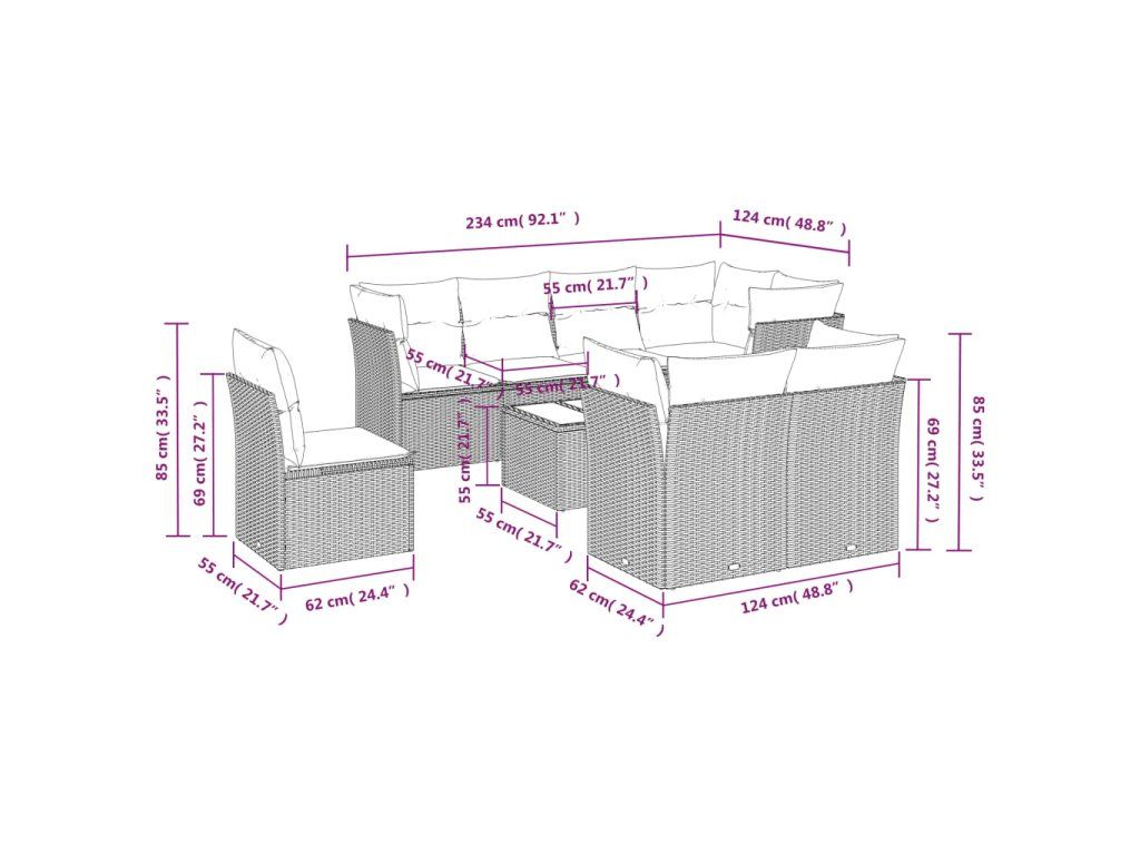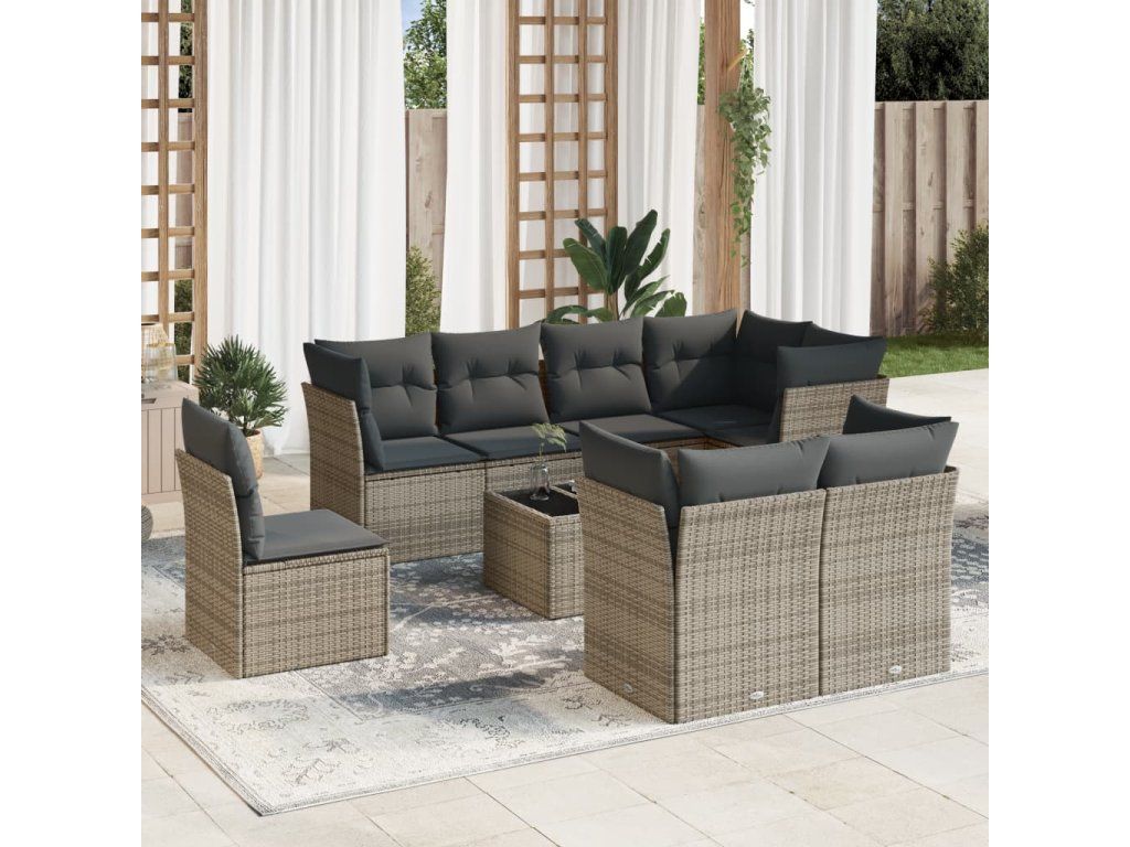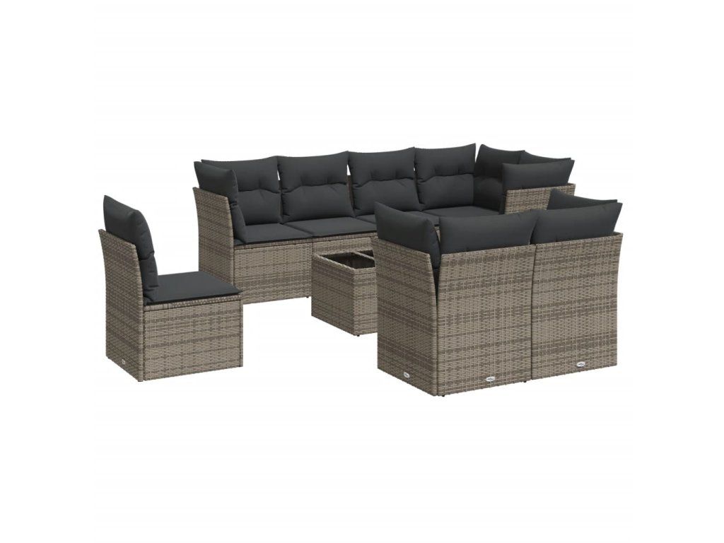 9dílná zahradní sedací souprava s poduškami šedá polyratan 3249779