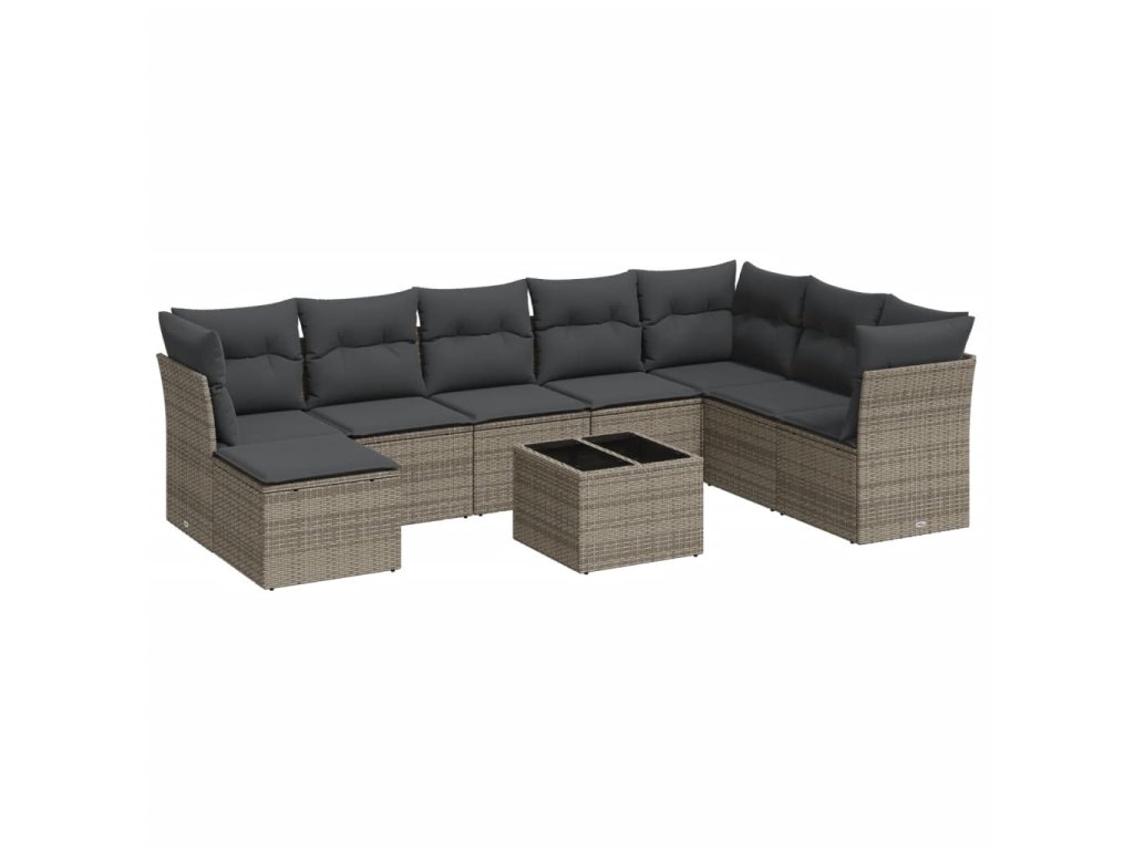 9dílná zahradní sedací souprava s poduškami šedá polyratan 3249899